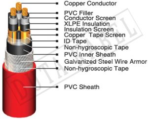 (Copper Conductor, XLPE Insulated, Copper Tape Screen, Galvanized Steel Wire Armor, PVC Sheathed)
