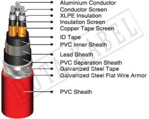 (Aluminium Conductor, XLPE Insulated, Copper Tape Screen, Lead Sheathed, Galvanized Steel Flat Wire Armor, PVC Sheathed)